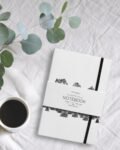 This vegan leather notebook features hand-drawn artwork by Canadian artist Jennifer Delaney; blending minimalism and modern elegance. The elastic closure ensures your ideas and thoughts stay secure, while the high-quality lined paper provides the perfect canvas for journaling, note-taking, and planning. The lay-flat binding allows you to write with ease on both pages, making this notebook a versatile companion for all your creative endeavours. Measuring 6×9 inches (A5 size), it’s the perfect size for travel, fitting seamlessly into your bag. Lightweight and portable, this notebook is a must-have for those who appreciate the beauty of simplicity and the joy of putting pen to paper. Elevate your writing experience and make this notebook a cherished gift for yourself or a loved one.